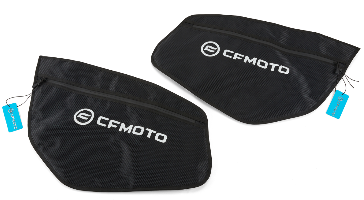 Setul de genți laterale pentru uși CFMOTO este conceput pentru a oferi spațiu suplimentar de depozitare și acces rapid la obiectele esențiale în timpul deplasărilor cu UTV-ul.