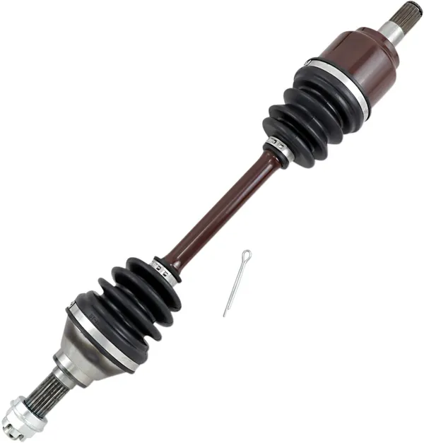Fully assembled outboard and inboard joints installed on a 4340 chrome-moly steel axle bar