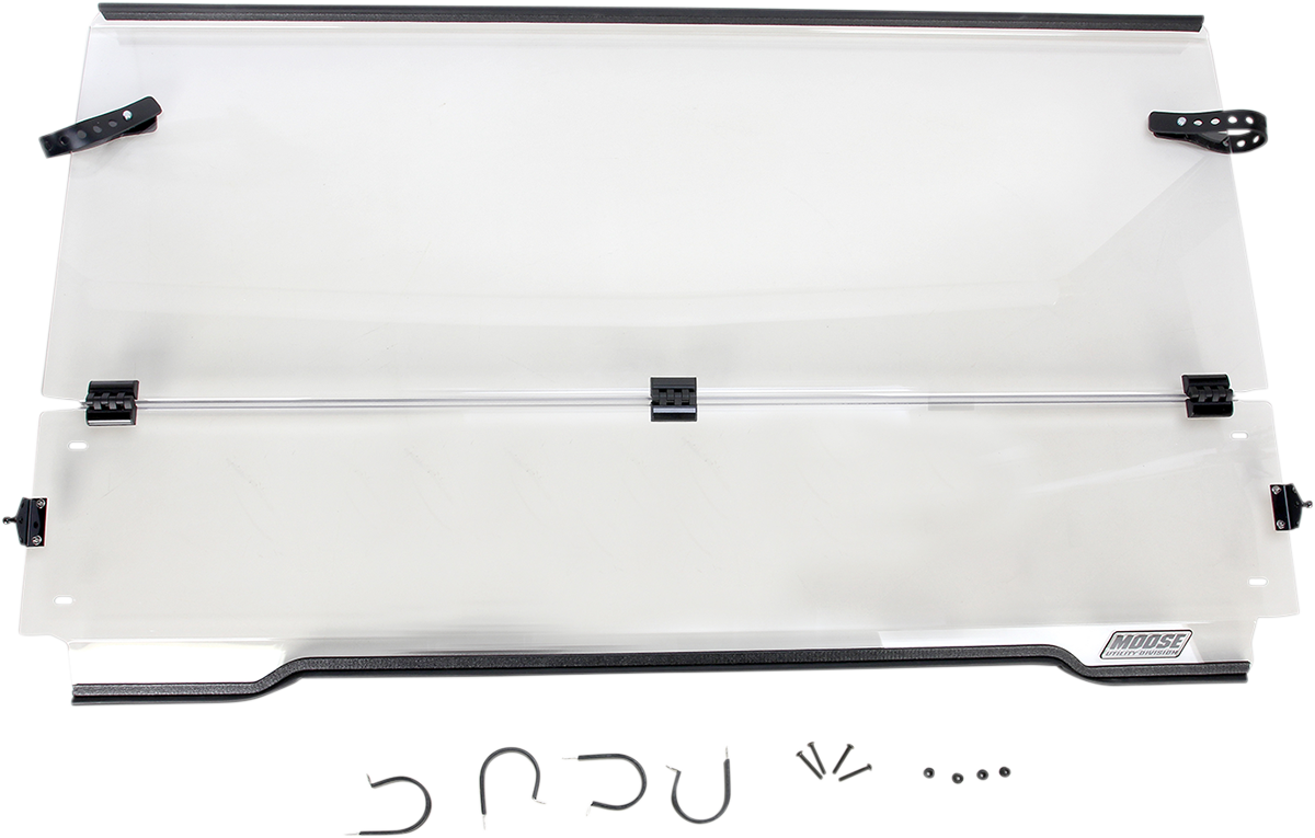 Oferă protecție completă a parbrizului cu opțiunea de a plia în jos partea de mijloc a parbrizului pentru a permite o mai bună circulație a aerului și/sau vizibilitate