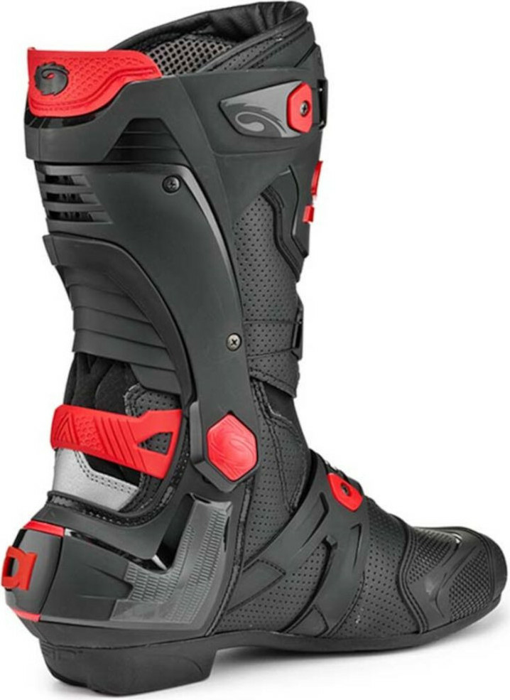 Rex este o cizmă care nu face compromisuri atunci când vine vorba de siguranță. Fiecare componentă a acestei cizme de curse a fost proiectată pentru a oferi protecție maximă. Purtată de piloții profesioniști, Rex are protecții TPU de înaltă calitate și un exoschelet din nylon ranforsat cu fibră de sticlă pentru un suport neprețuit. Sistemul de cadran din rășină de înaltă densitate este conceput pentru a asigura o potrivire perfectă și pentru a regla cizma din ambele părți. Acesta este poziționat în exteriorul zonelor de contact și integrat în structura ghetei pentru a oferi protecție la impact pentru o mai mare siguranță.