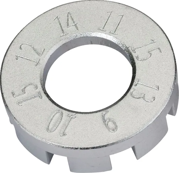 Includes 9 through 15 gauge fitments with the size numbers stamped into the wrench