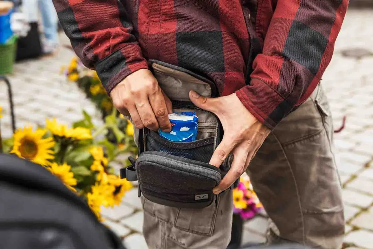 Worn directly on the leg, it provides quick access to personal items without restricting freedom of movement while driving.