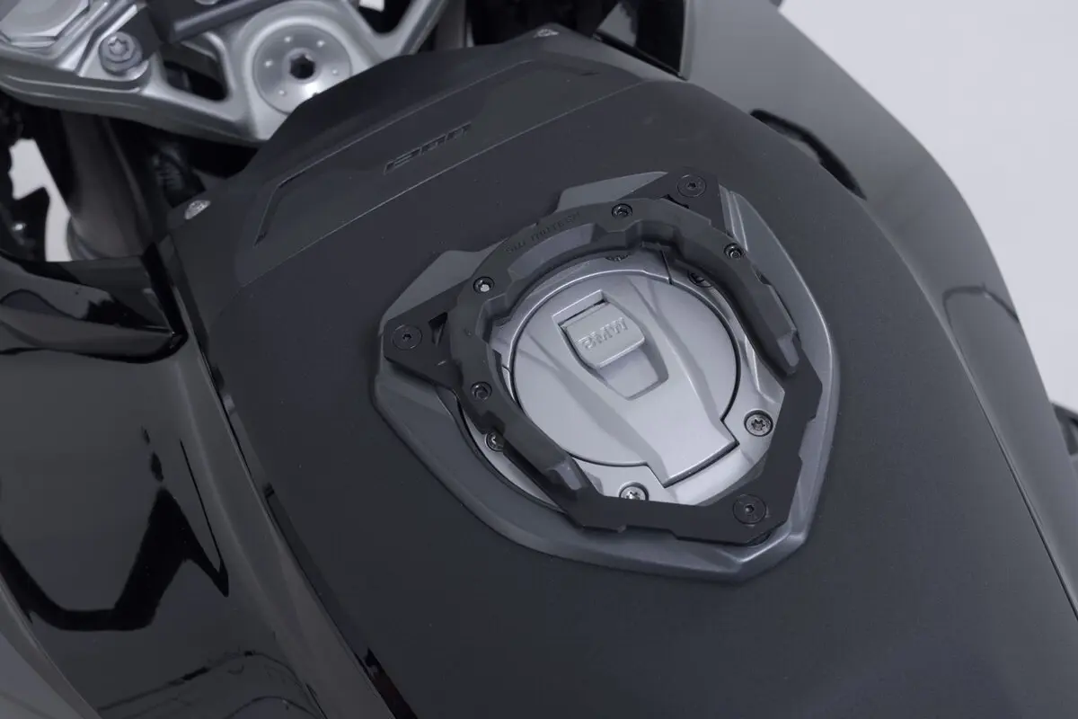 The mechanical locking mechanism secures the tank bag, and the magnets bring both parts of the ring together. The robust fibreglass reinforced plastic with its high-precision locking geometry is responsible for ensuring that the tank bag remains firmly in place in all situations.
