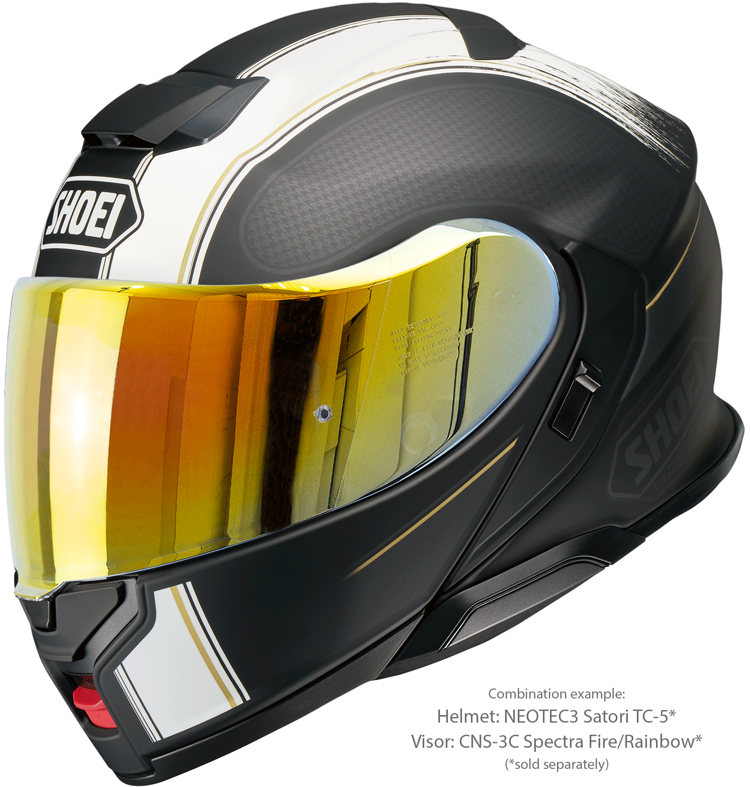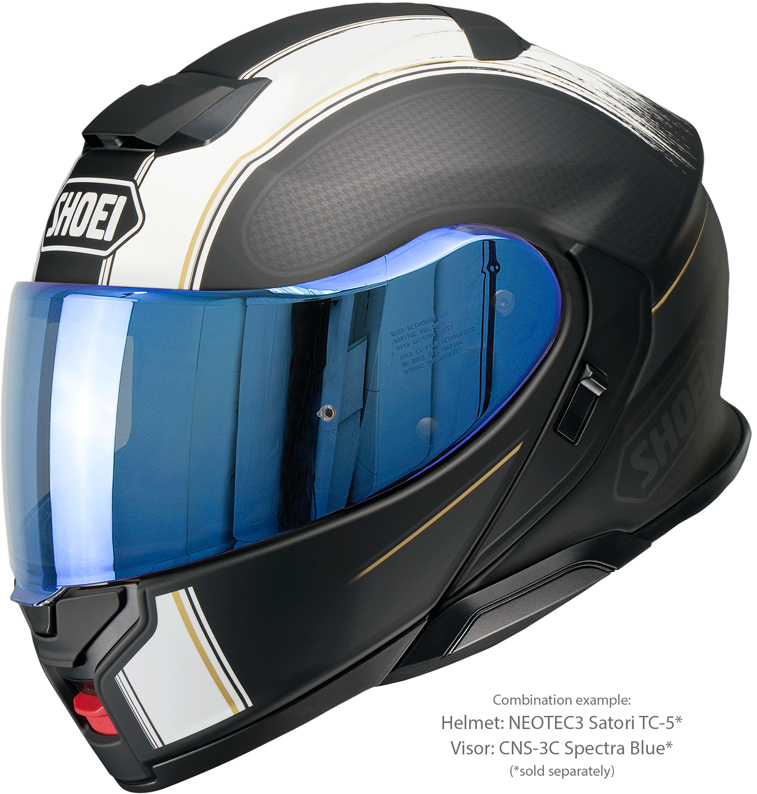 Casca dispune de ochelari de soare integrați QSV-2 pentru protecție maximă împotriva reflexiilor și este certificată conform standardului ECE-R 22.06. Datorită omologării duble P/J, NEOTEC3 poate fi utilizată în siguranță atât cu bărbia închisă, cât și deschisă (la viteze adaptate).