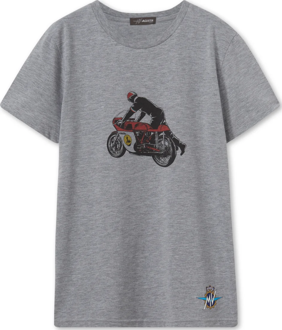 The Reparto Corse Vintage Rider T-Shirt by MV Agusta in grey allows you to wear a part of MV history. The T-shirt features a vintage Reparto Corse rider print on the front with the MV logo on both front and back.