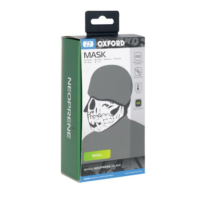 Masca Oxford Neoprene Skull îmbină protecția tehnică superioară cu un design vizual de impact, fiind ideală pentru motocicliștii care doresc un plus de stil și vizibilitate în condiții de lumină scăzută.