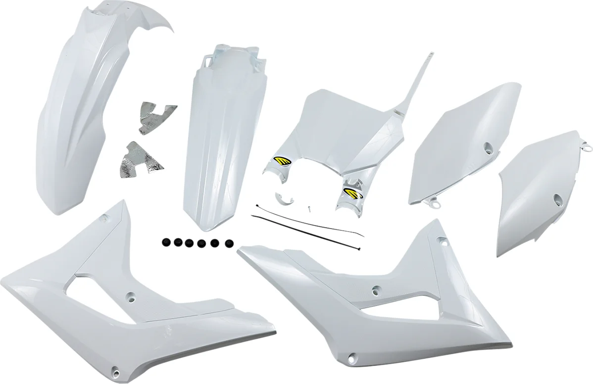 Setul de caroserie din plastic include aripa față, aripa spate, cupe pentru radiator, panouri laterale, plăcuța de înmatriculare a stadionului