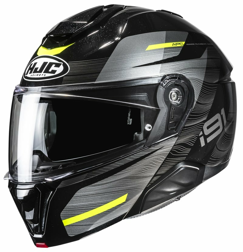 Carcasa avansată din policarbonat este deosebit de ușoară, iar tehnologia avansată CAD asigură un confort remarcabil și o potrivire perfectă. Potrivit pentru purtătorii de ochelari, i91 este pregătit și pentru sistemele de comunicare Bluetooth Smart HJC 11B, 21B și 50B.